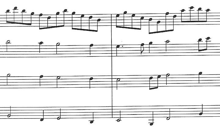 Similar to the Dowland in origin and difficulty. This piece has some interesting rhythms in the last section. No fingerings. |