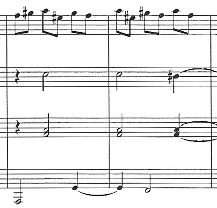 This movement from Peer Gynt Suite has some interesting interplay between parts and some rather high notes for guitar I. Difficult. No Fingerings. Dropped"D". |